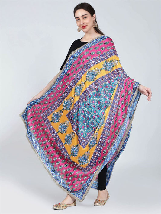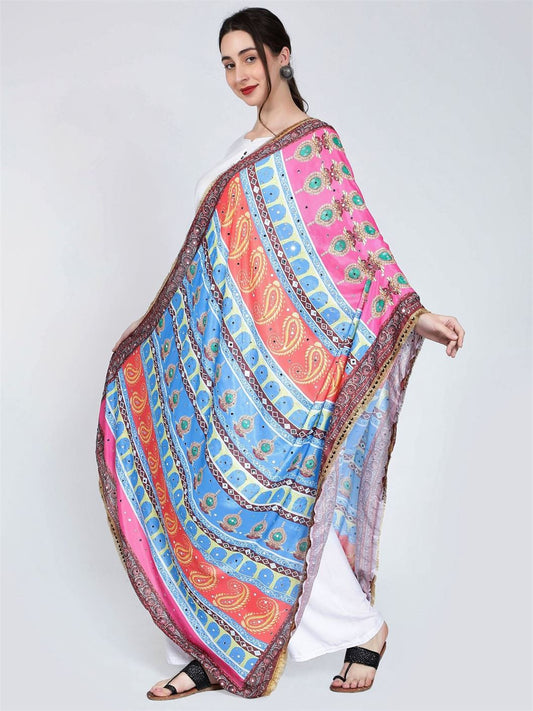 Chiffon Digital Print Pakistani Dupatta with Heavy Mirror Work-MCMMPD0102