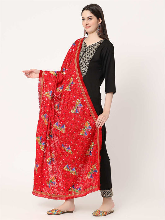 Red Butterfly Embroidery Phulkari Dupatta | MCRCPD0112