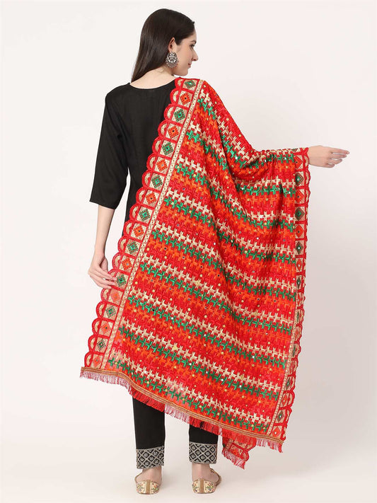 SAVE 57%Red Phulkari Dupatta | MCRCPD0218