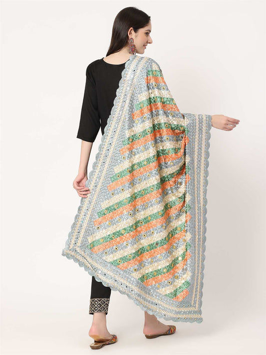 Grey Multicolour Embroidery Phulkari Dupatta with Beads | MCRCPD0138