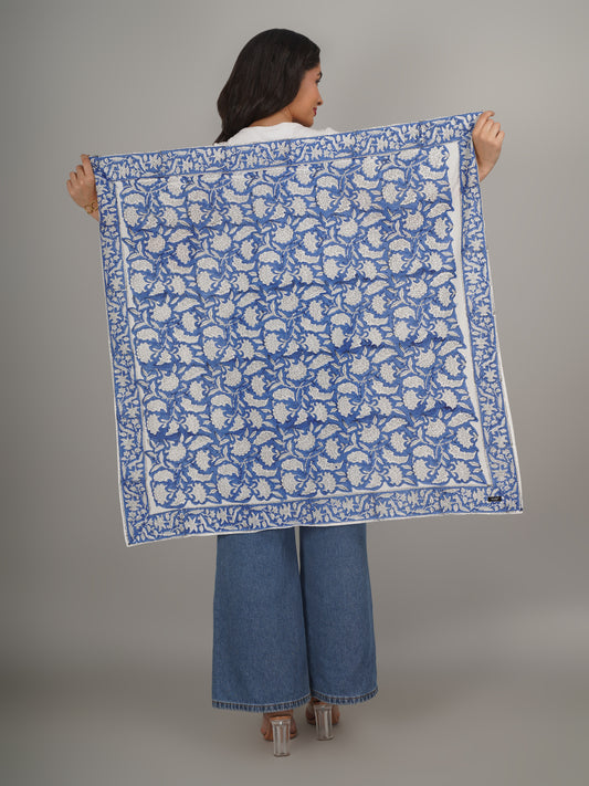 Blue Floral Print Pure Cotton Scarf 40 x 40 Inches-MCHP0016