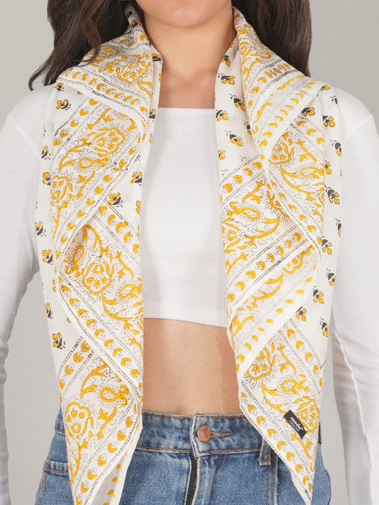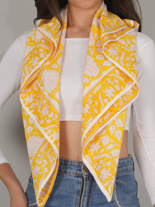 Yellow Floral Print Pure Cotton Scarf 40 x 40 Inches-MCHP0001
