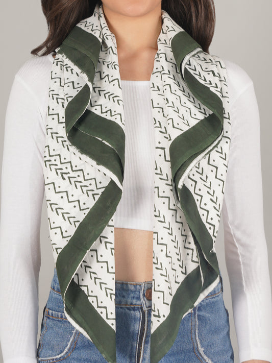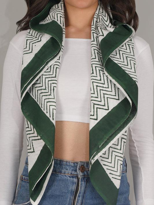 Green Abstract Print Pure Cotton Scarf 40 x 40 Inches-MCHP0002