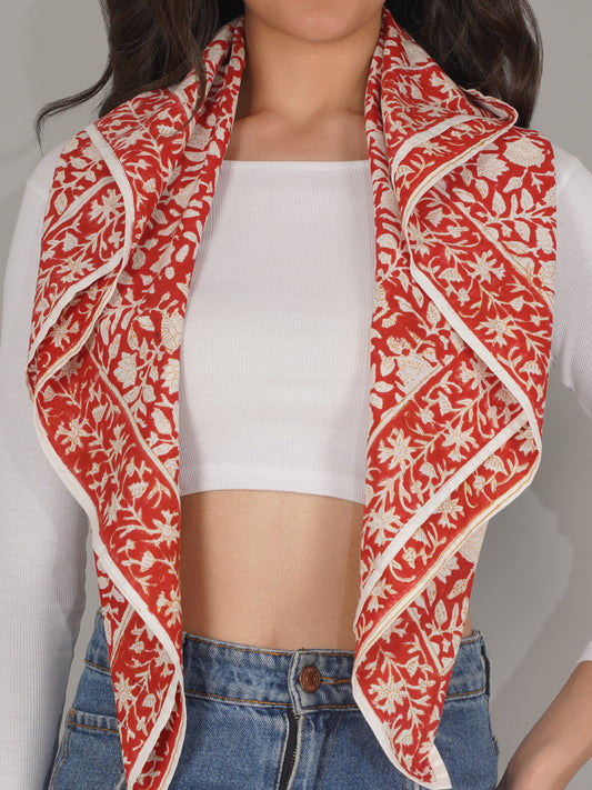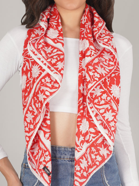Red Floral Print Pure Cotton Scarf 40 x 40 Inches-MCHP0011