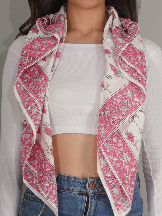 Pink Floral Print Pure Cotton Scarf 40 x 40 Inches-MCHP0010