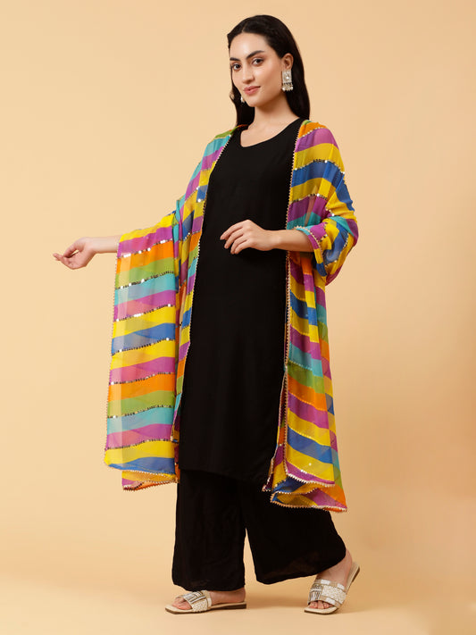 Multicolour Chiffon Striped Sequinned Dupatta | MCRCPD0114B