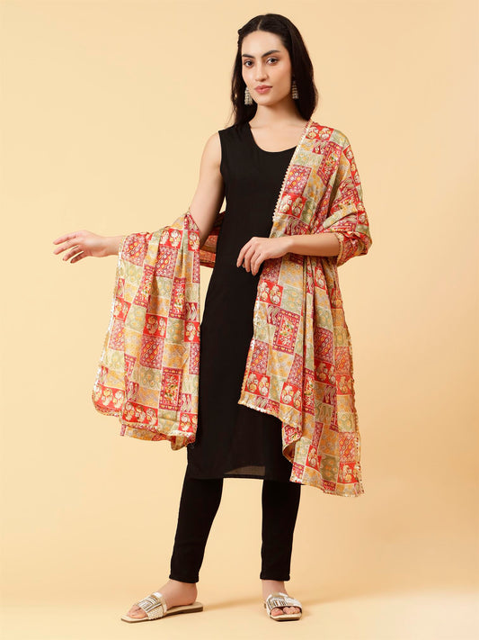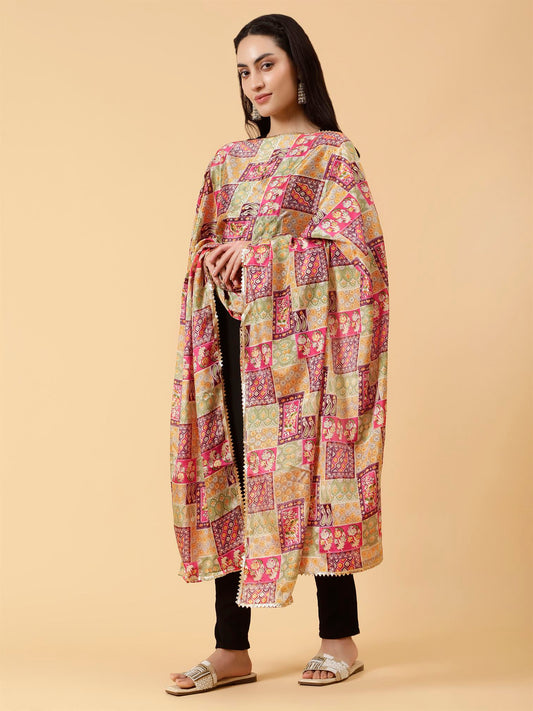 Digital Printed Dupatta with Golden Lace Multicolour | MCRCPD0228