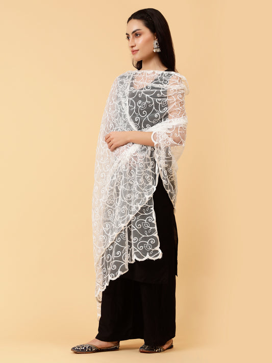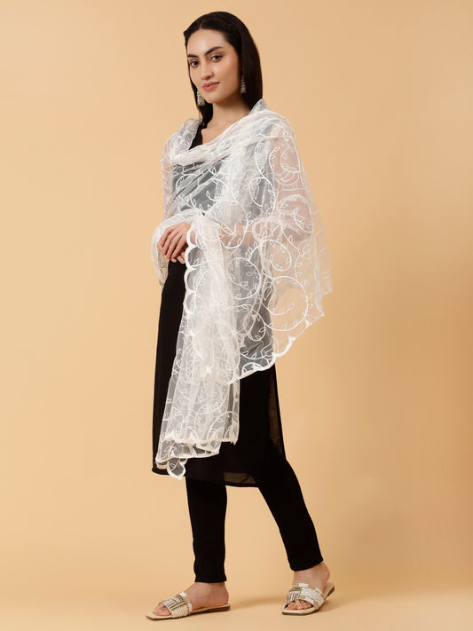 Golden Sequence Embroidered Net Dupatta | MCRCPD0243