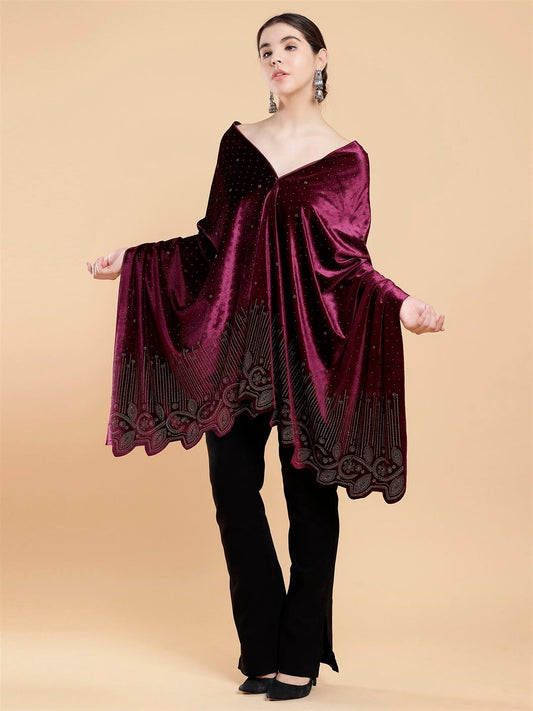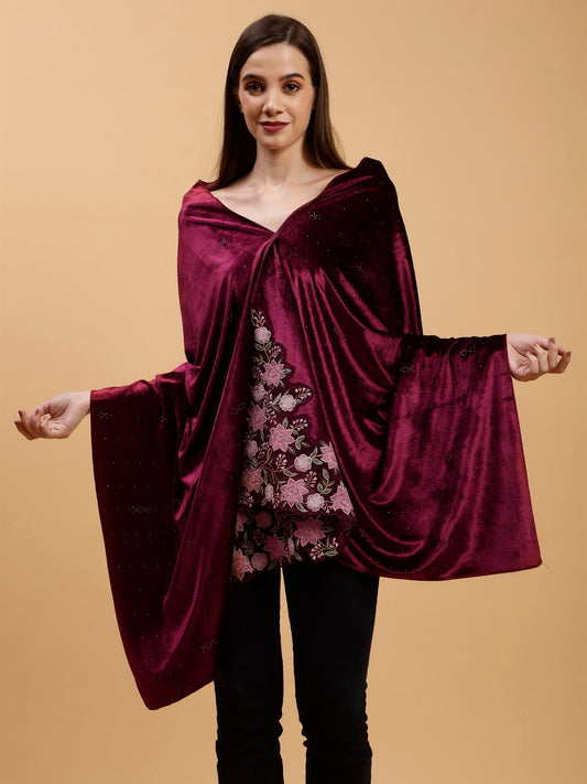 Purple (Wine) Embellished Velvet Stole - MCHSVD1614W