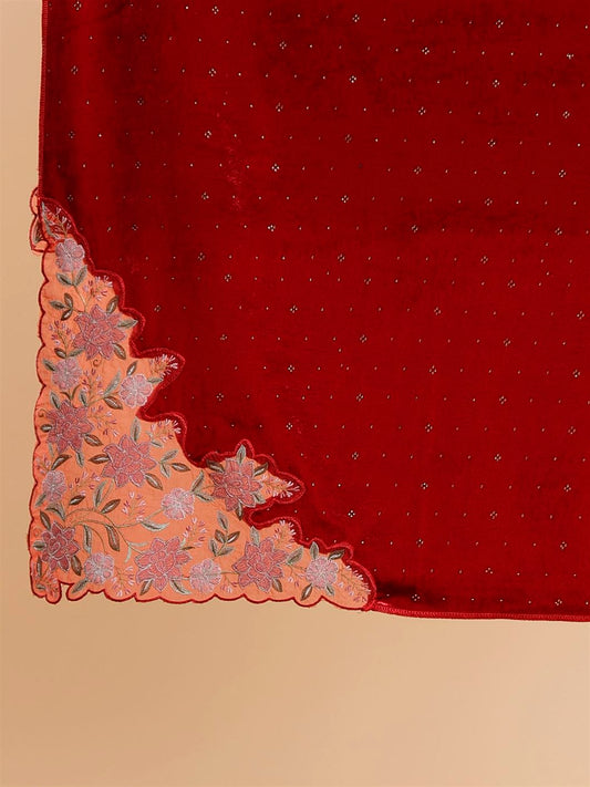 Maroon Embroidered Velvet Stole - MCHSVD1601M