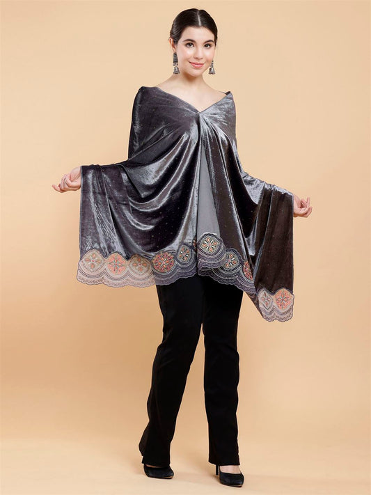 Steel Grey Embellished Velvet Stole - MCHSVD1630GREY