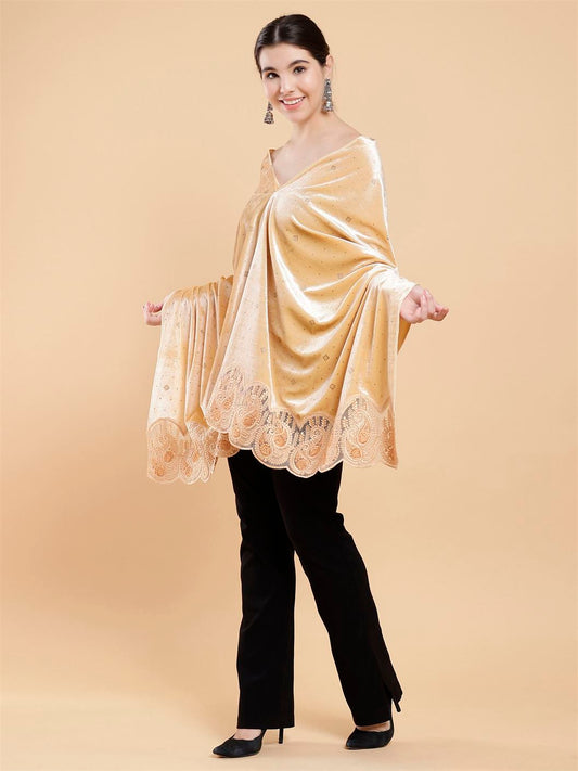Tan Embellished Velvet Stole - MCHSVD1627T