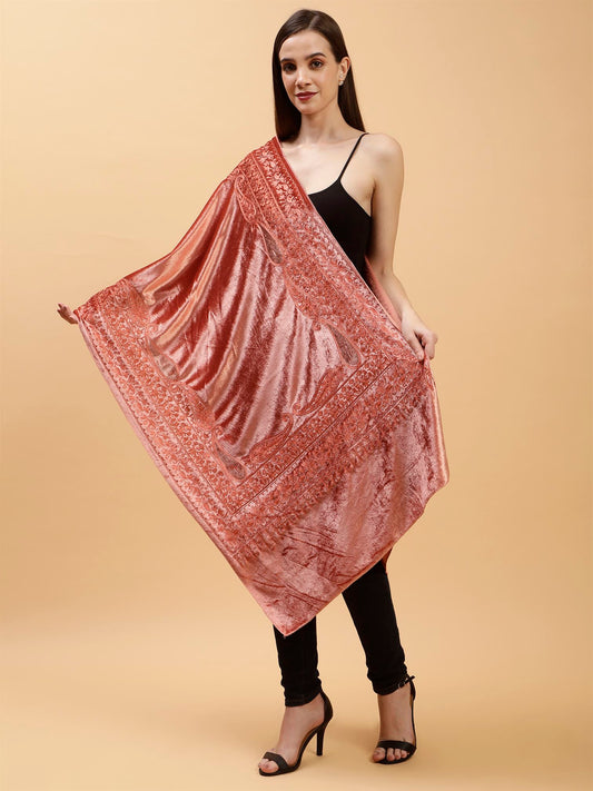 Peach Embellished Velvet Stole - MCHSVD1629P