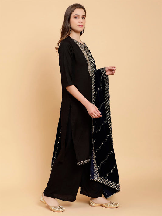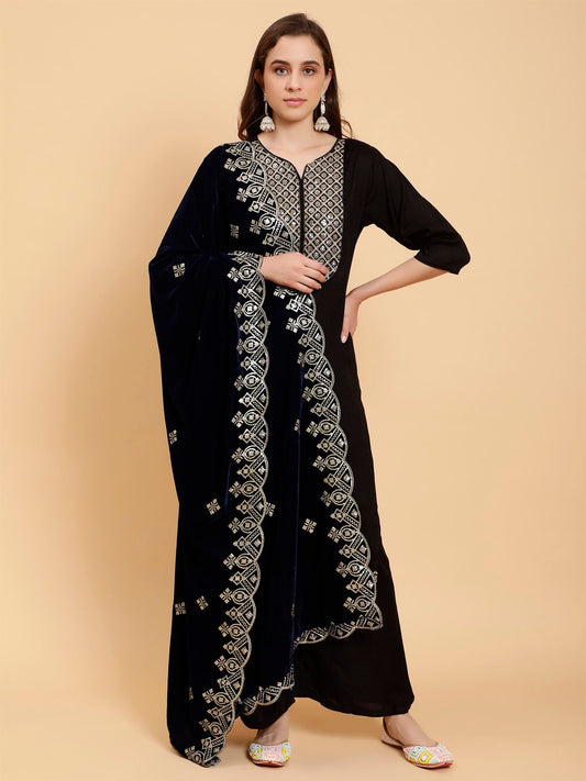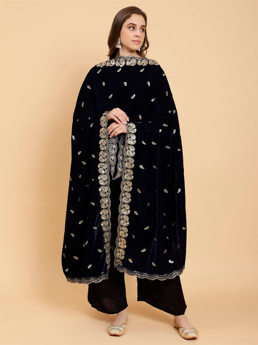 Navy Blue Embellished Velvet Dupatta | MCRCVD7346
