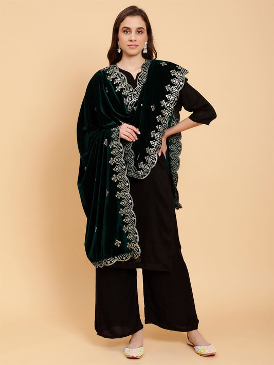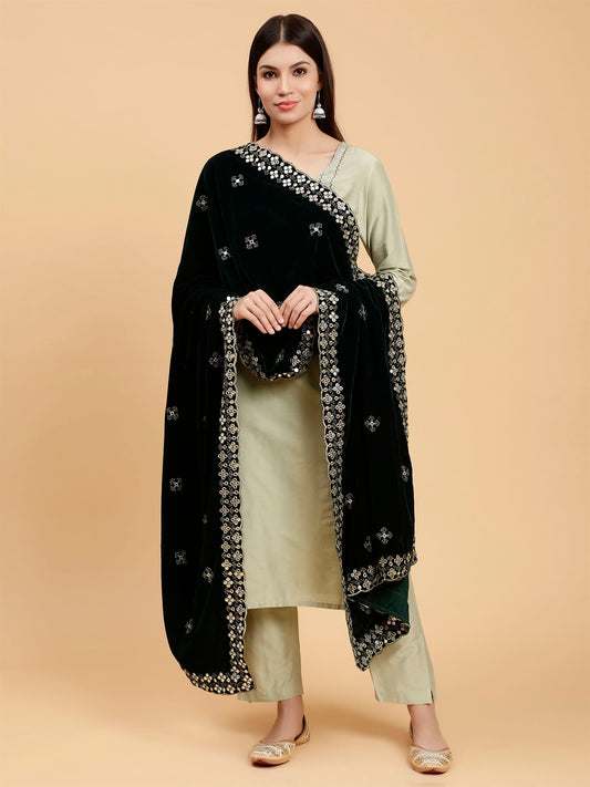 Green Embellished Velvet Dupatta | MCRCVD7357