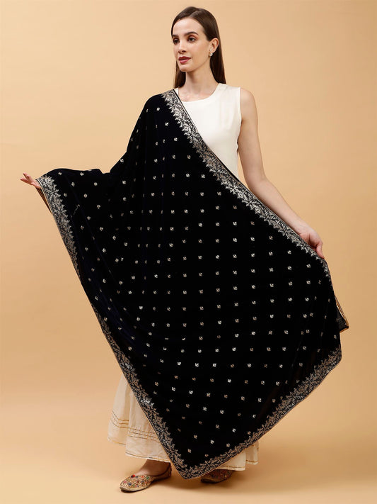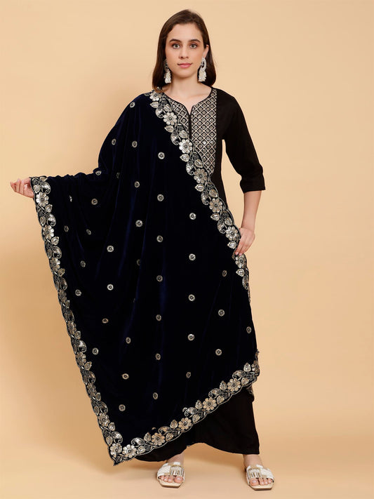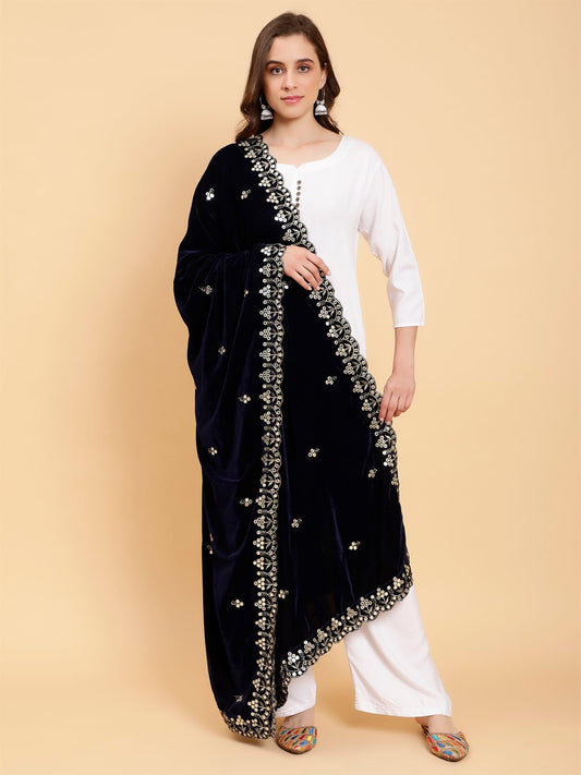 Navy Blue Embellished Velvet Dupatta | MCRCVD7386
