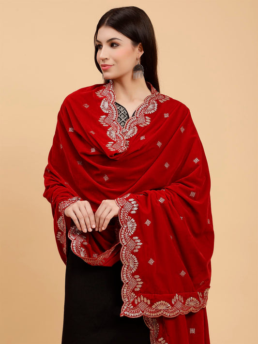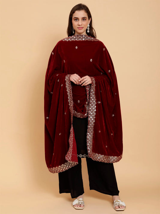 Maroon Embellished Velvet Dupatta | MCRCVD7304