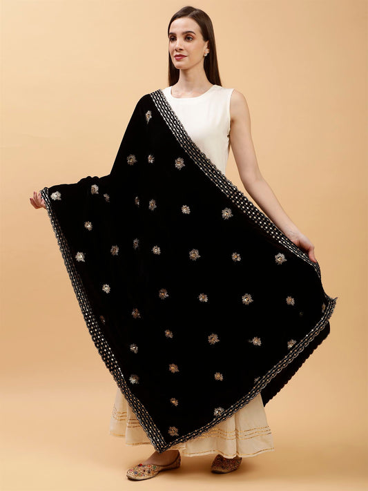 Black Embellished Velvet Dupatta | MCRCVD7261