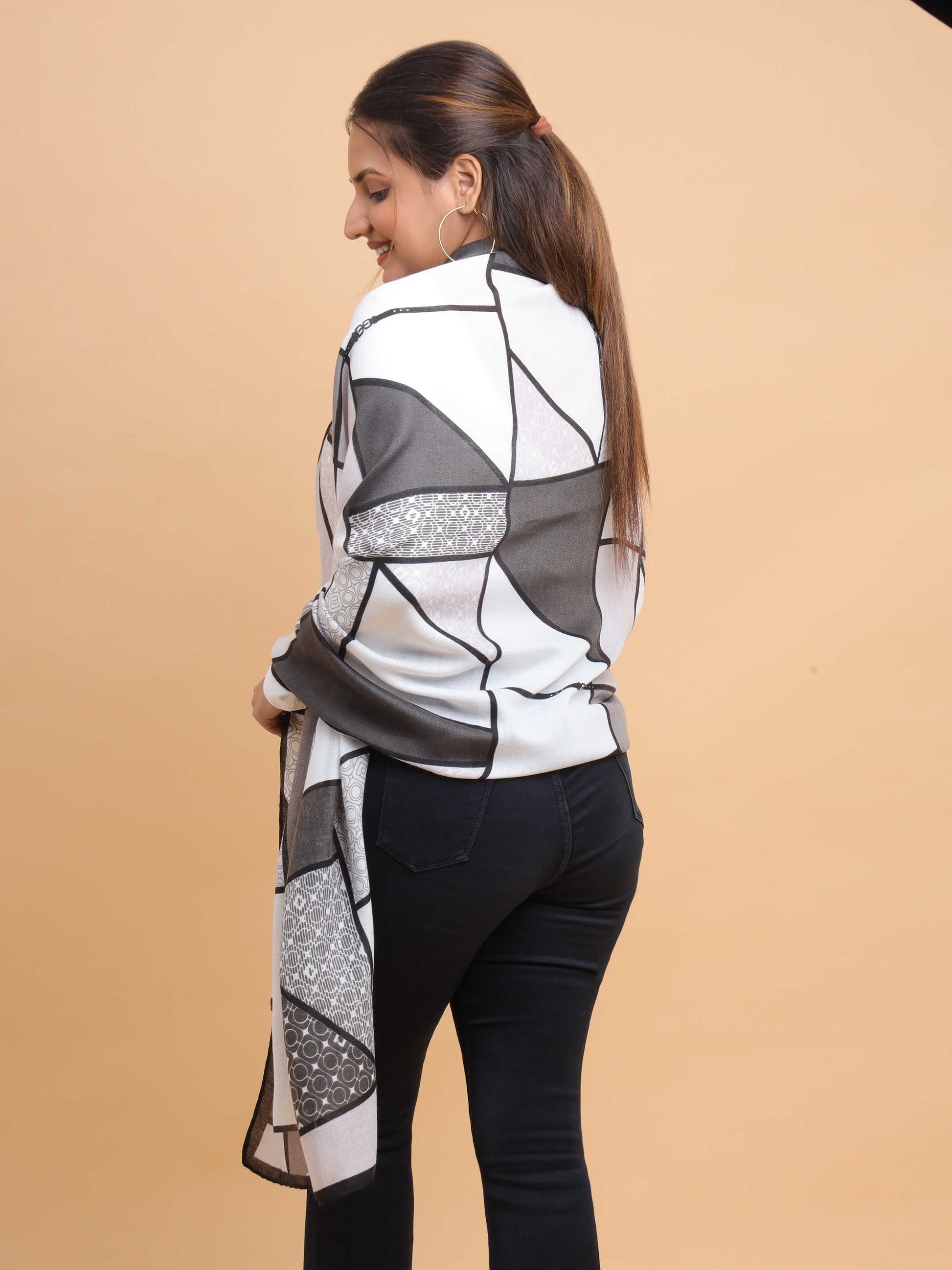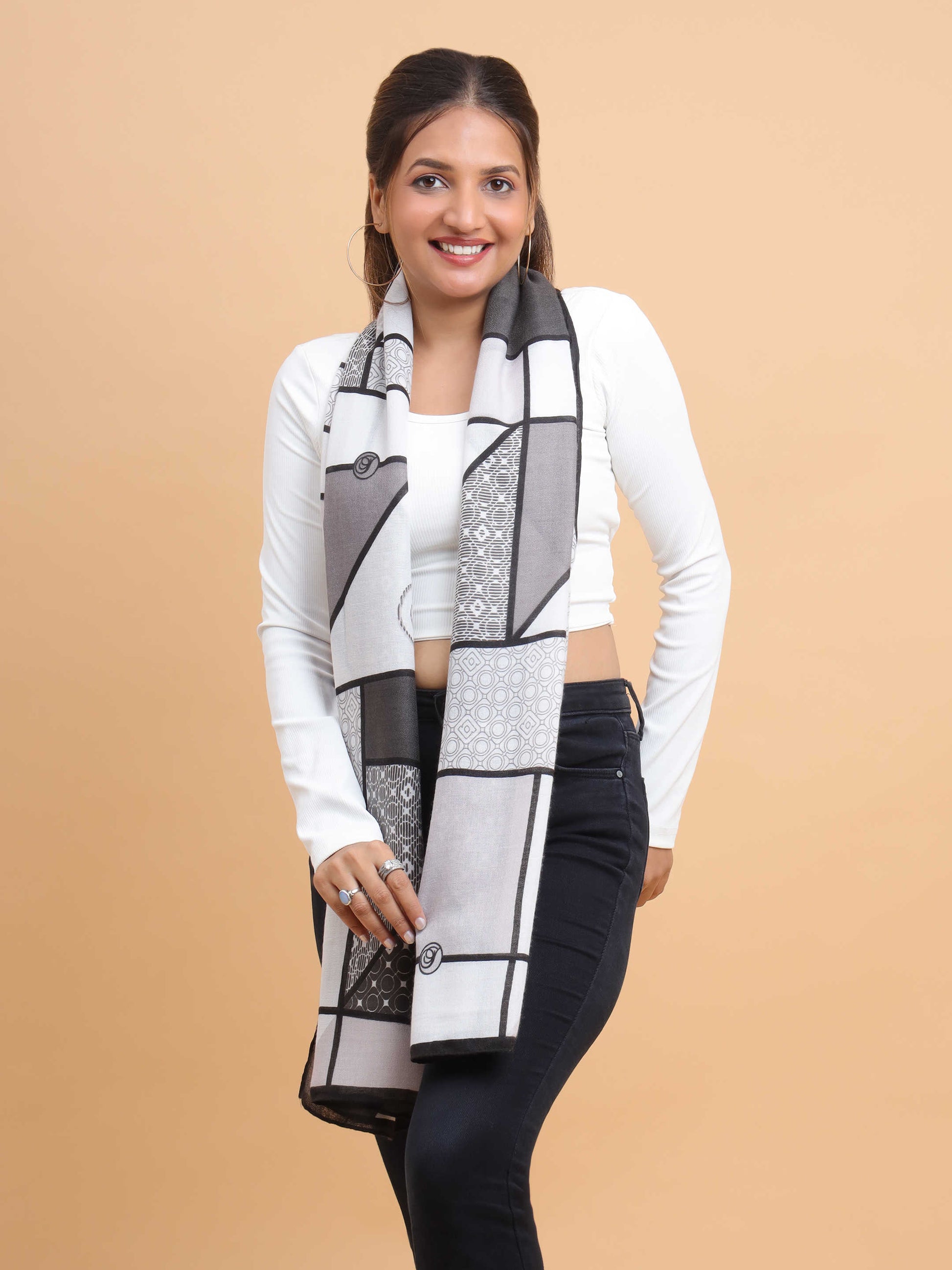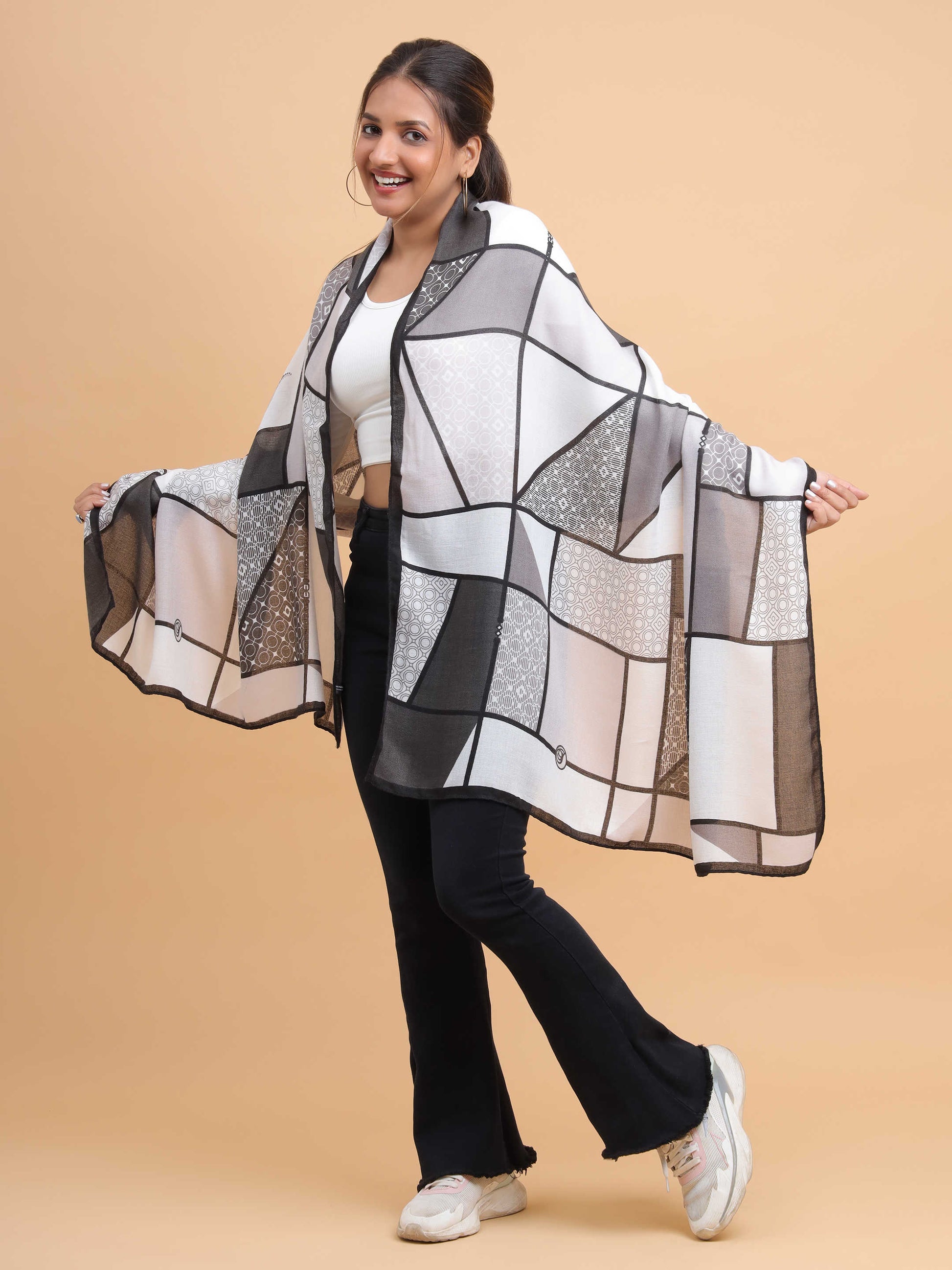Black & Grey Abstract Geometric 100% Viscose Scarf
