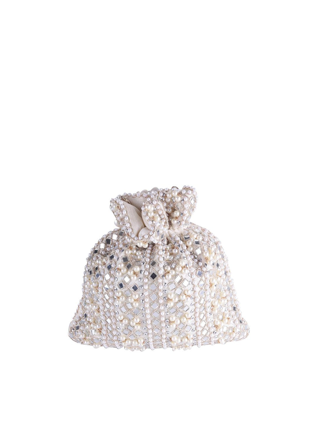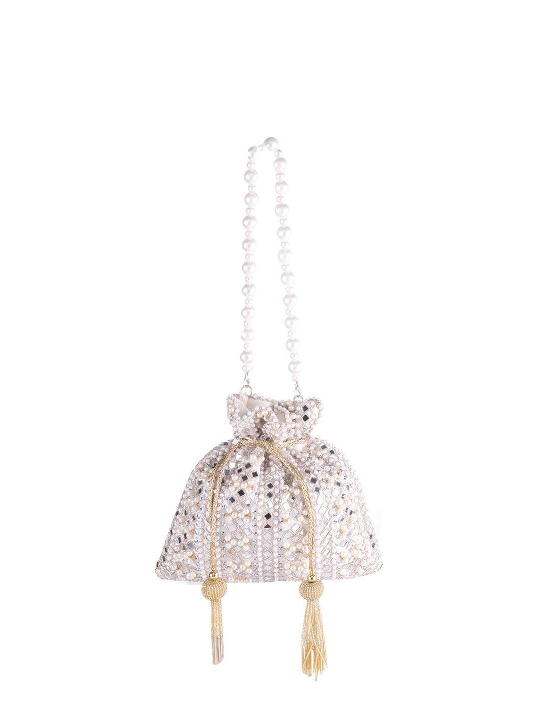 Ivory Lume Mirror Embellished Potli Bag – Golden Grace (9 x 8.5 in)