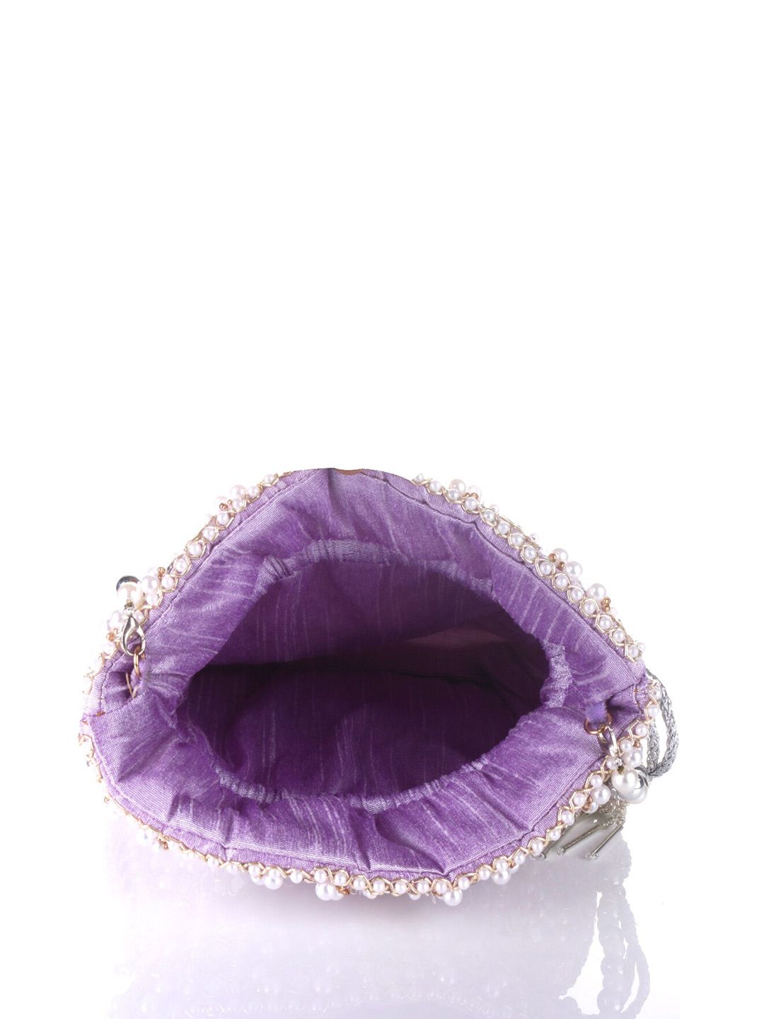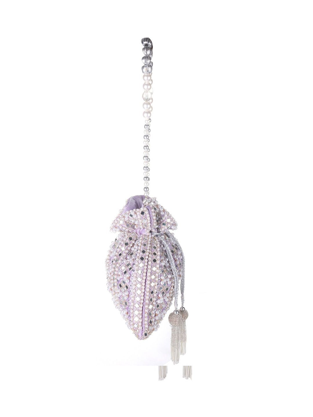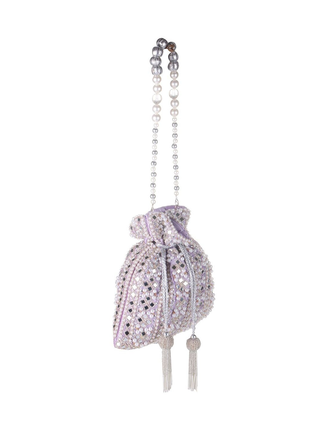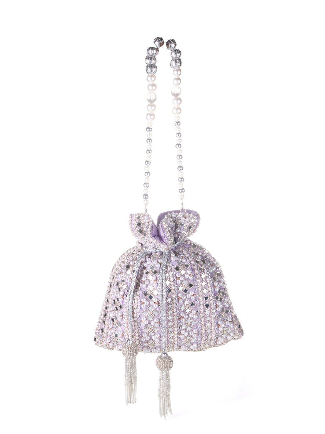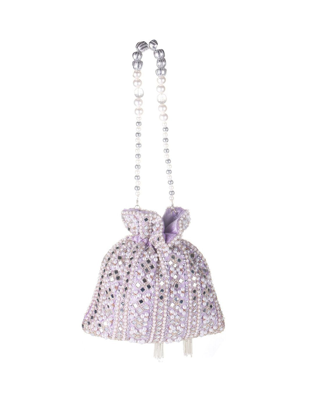Lilac Frost Mirror Embellished Potli Bag – Lavender Luxe (9 x 8.5 in)