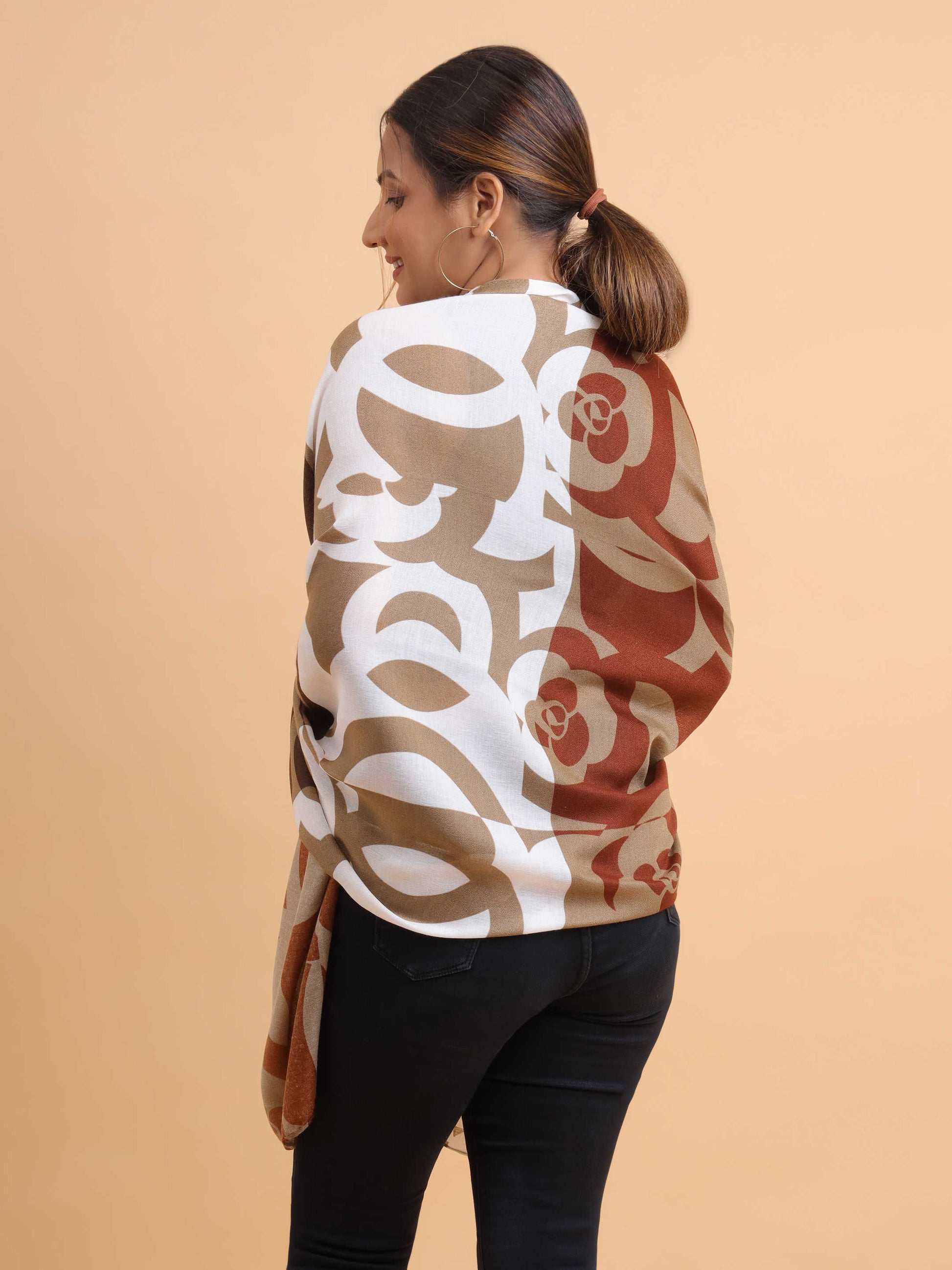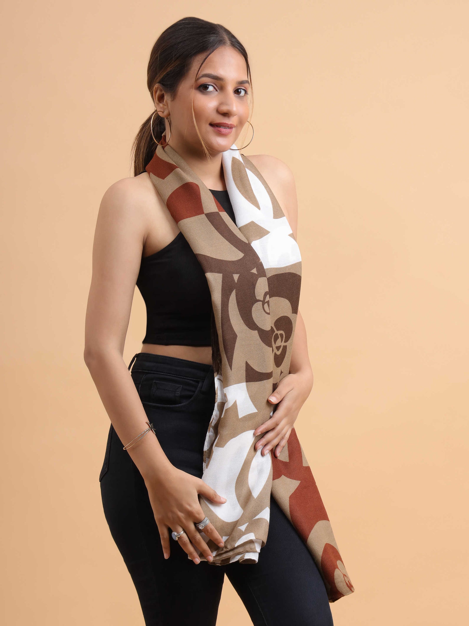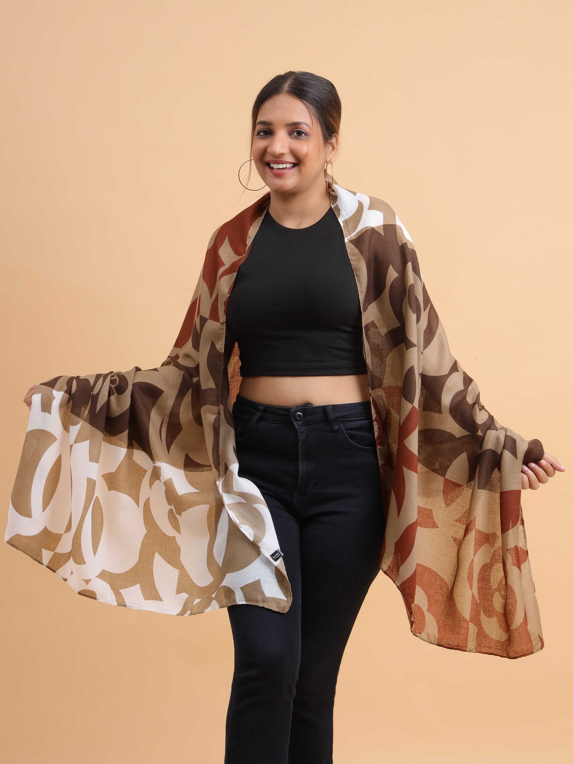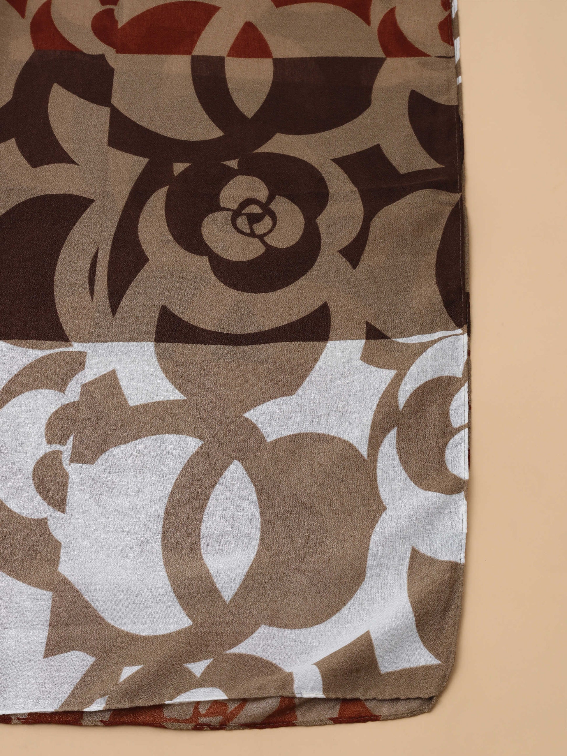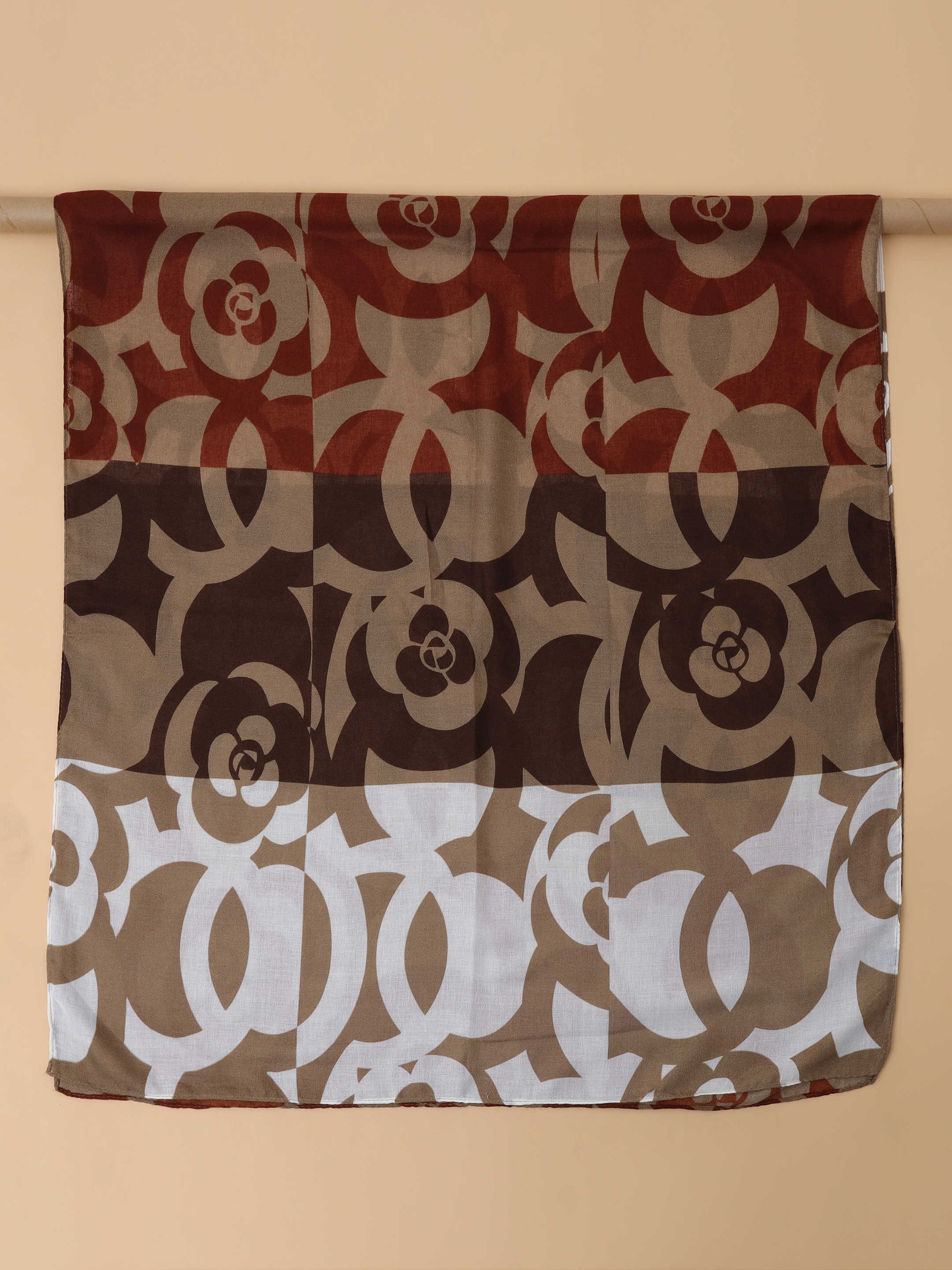 Add a modern artistic flair to your wardrobe with this Maroon & Brown Floral Block 100% Viscose Scarf. Measuring 85 x 190 cm, this scarf features bold floral and circular motifs arranged in striking color blocks of maroon, brown, beige, and white. The lightweight viscose fabric ensures a soft, breathable feel and a graceful drape, making it perfect for both casual and dressy occasions. Whether paired with casual wear or dressed up for special occasions, this scarf offers both comfort and versatility. The soft viscose fabric ensures a smooth, breathable feel against the skin—similar in softness to cotton, but with a silkier, lighter drape. This makes it ideal for year-round use, providing the coolness and comfort you expect from cotton, with the added elegance and fluidity of viscose.