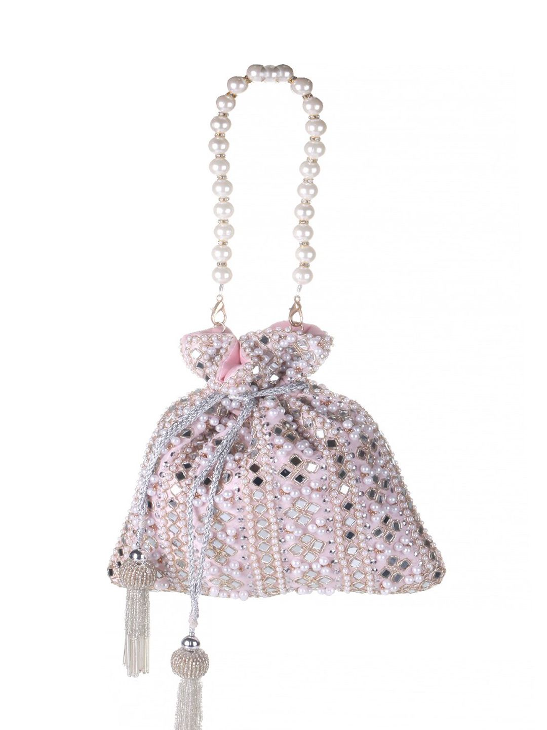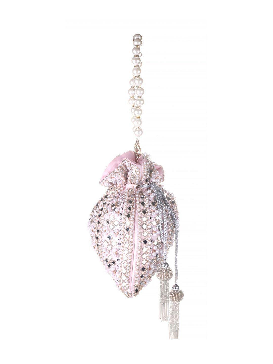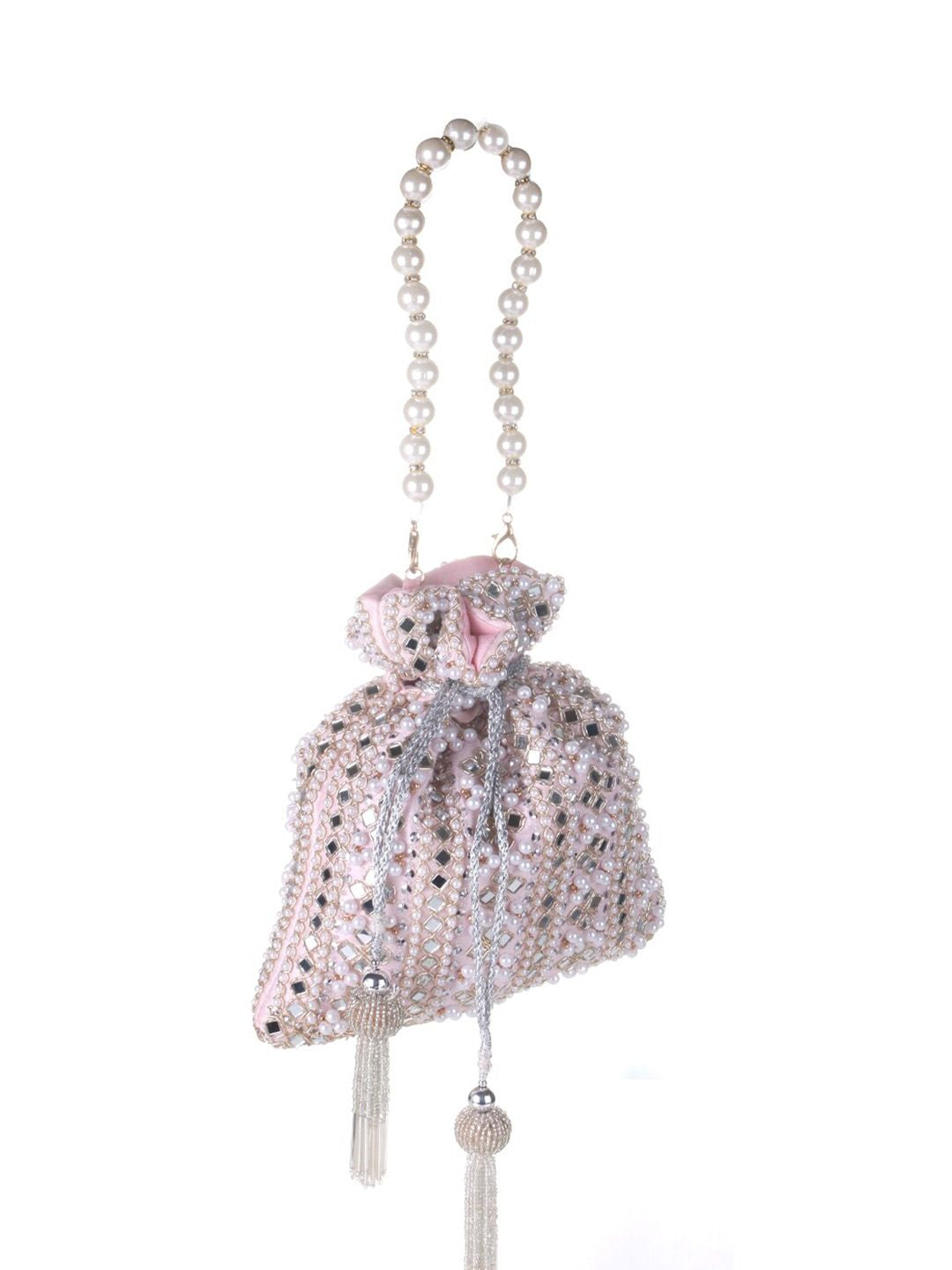 Roselia Mirror Embellished Potli Bag – Blush Pink Elegance (9 x 8.5 in)
