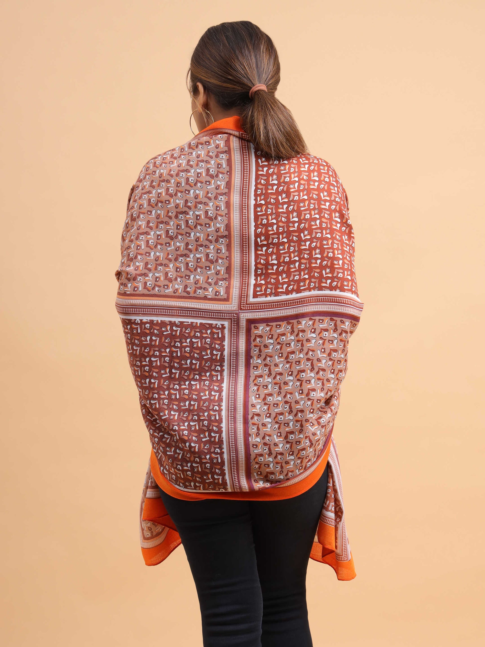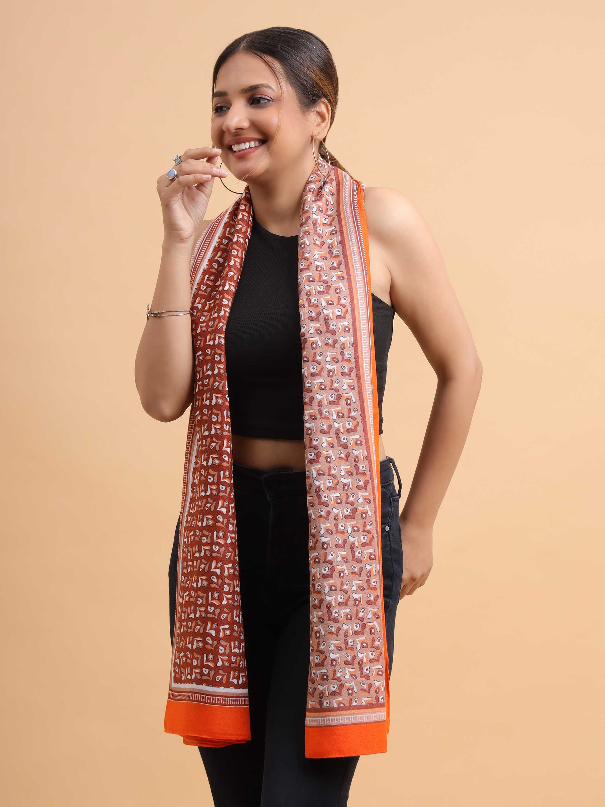 Rust Orange Dual-Tone Geometric 100% Viscose Scarf