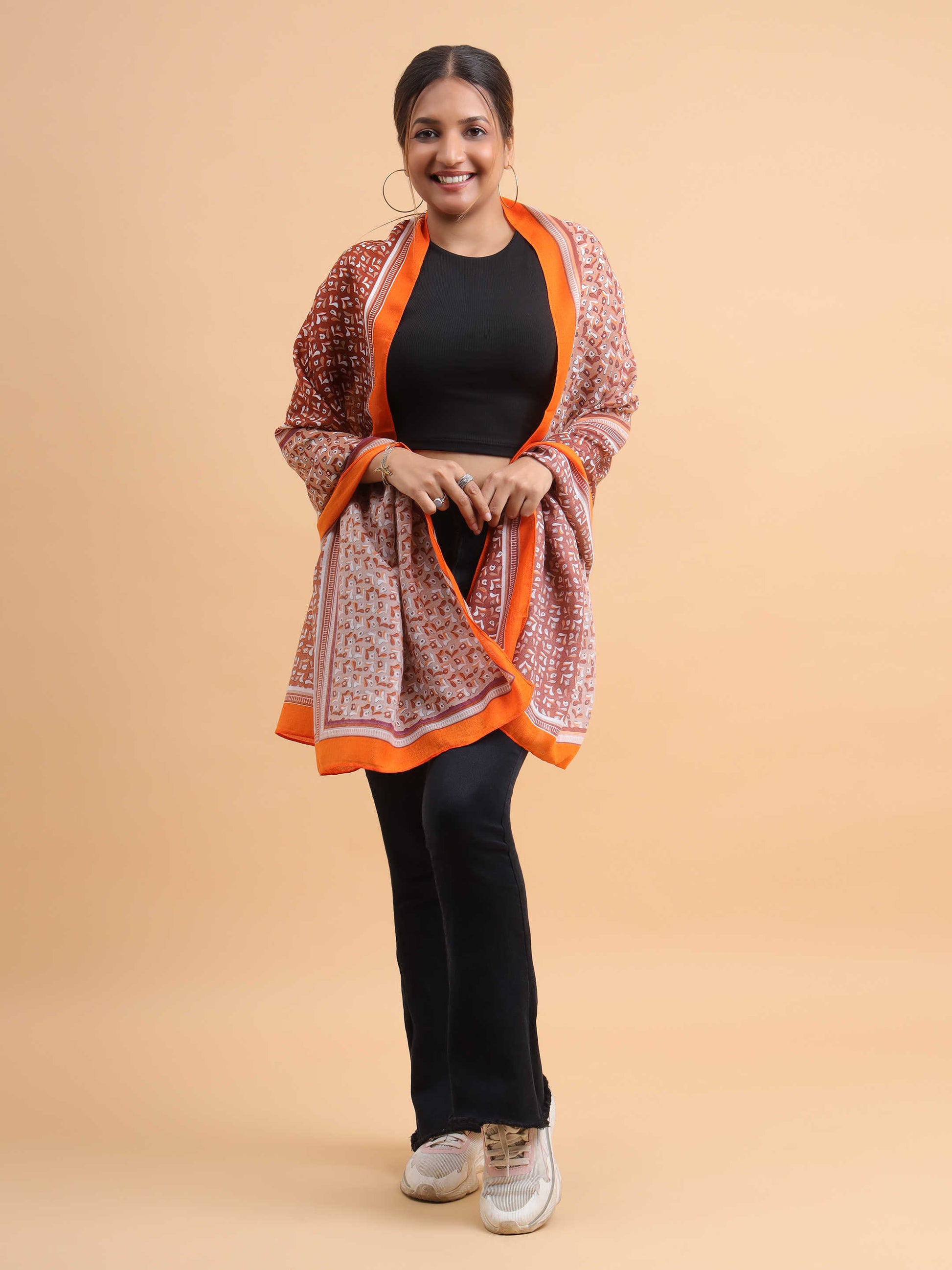 Stand out with the Rust Dual-Tone Geometric 100% Viscose Scarf, designed to add a vibrant touch to your look. Whether paired with casual wear or dressed up for special occasions, this scarf offers both comfort and versatility. The soft viscose fabric ensures a smooth, breathable feel against the skin—similar in softness to cotton, but with a silkier, lighter drape. This makes it ideal for year-round use, providing the coolness and comfort you expect from cotton, with the added elegance and fluidity of viscose.